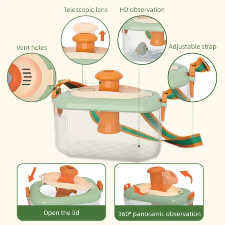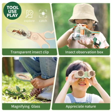 - 【Innovated Bug Catcher Kit】- Our nature toy kit provide kids the way to observe the insect, rocks, plants and the whole nature more clearly. The magnifying glass allows children to observe bugs closely. Featuring bug containers, a butterfly net, tweezers, a bug collector on common insects close to you, your boy or girl can study and keep track of all the bugs found in the grass.