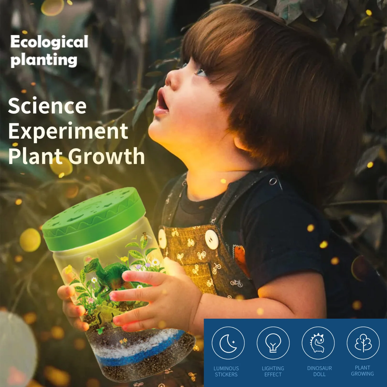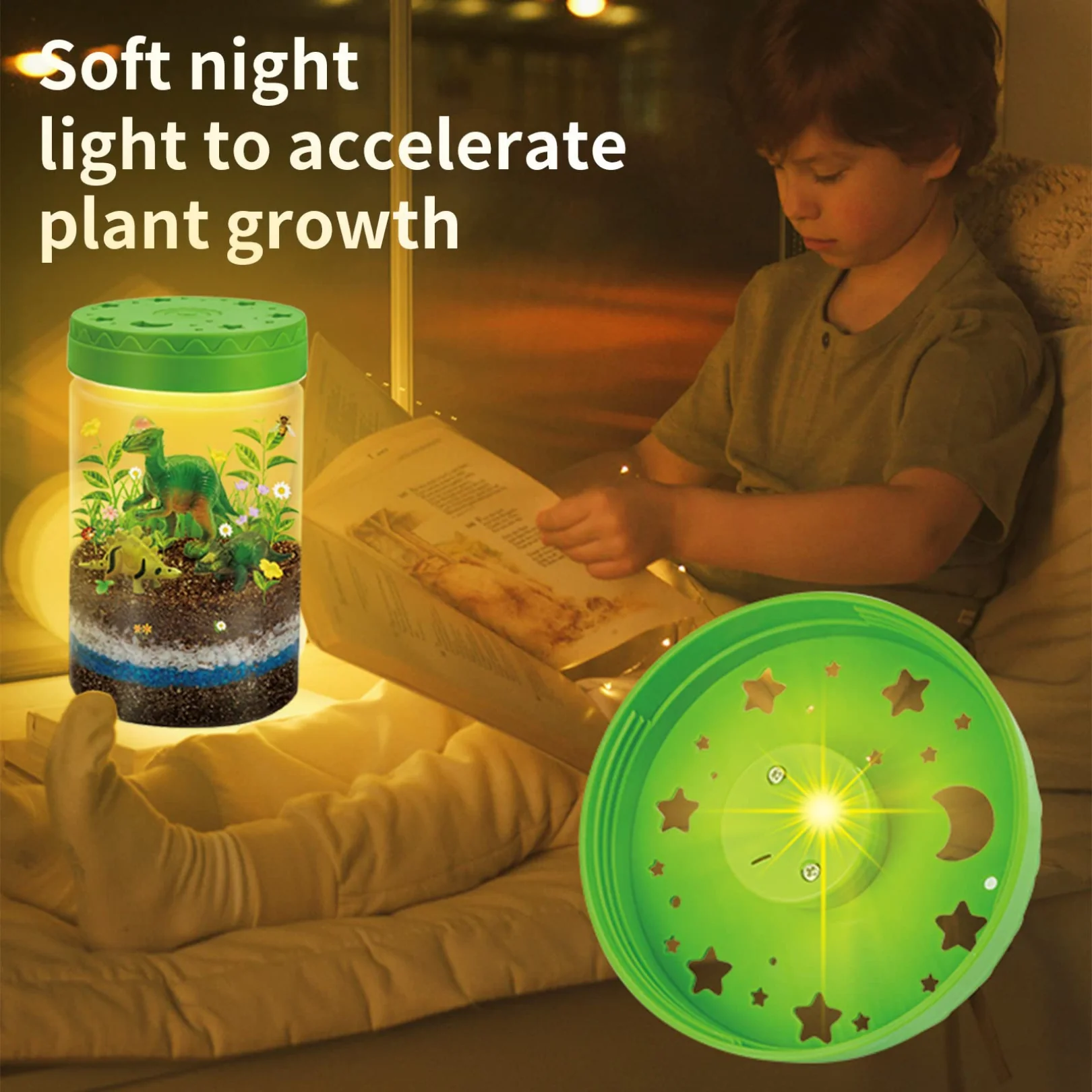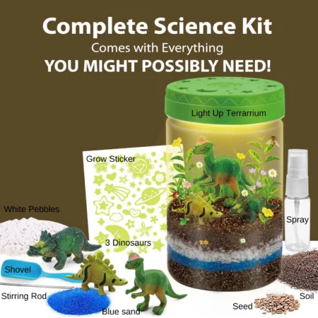 Light-Up Dinosaur Terrarium Kit for Kids – DIY Glow-in-The-Dark Dinosaur Garden with LED Lights, STEM Science Kit for Boys & Girls Ages 4-12