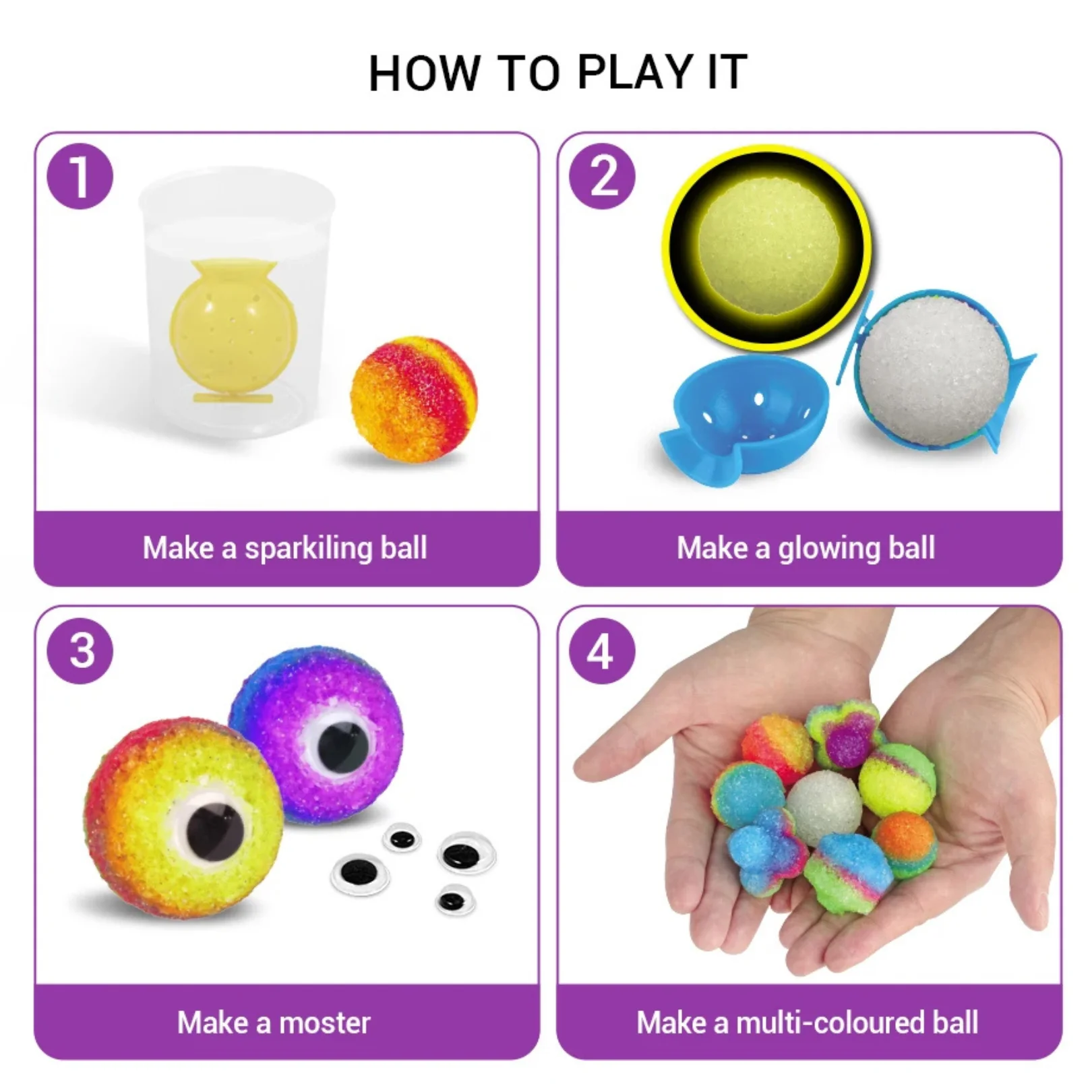 - Create Your Own Bouncy Balls: Easy-to-use kit lets kids make colorful bouncy balls by mixing crystal powder and water. Perfect for hands-on fun!