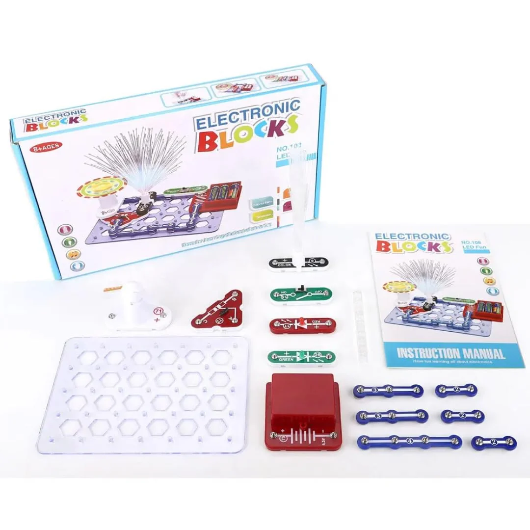 - Beginner Electric Circuit Kit: Introduces young engineers to the basics of electricity with multi-colored, large particle circuit components that are easy to build, just like playing with blocks.