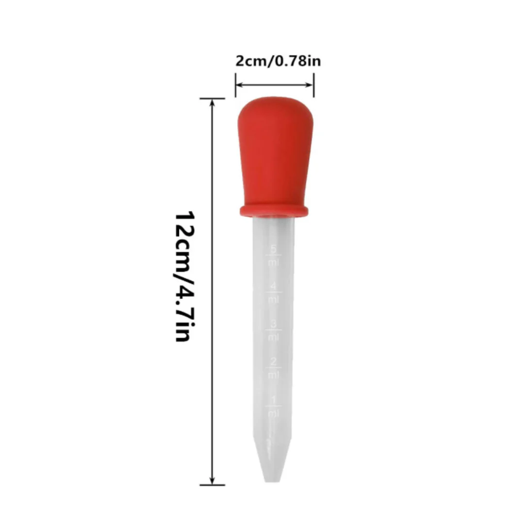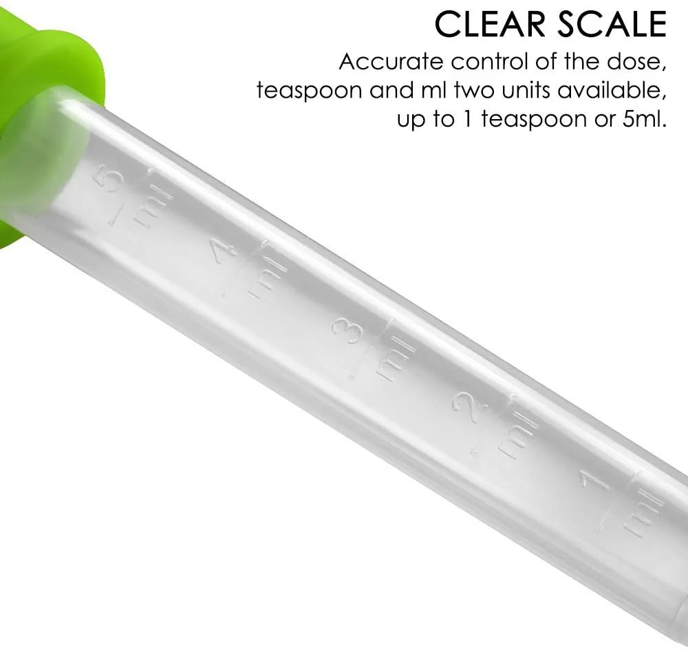 - MEASUREMENT AND SIZE: Each dropper is graduated as follows: 1 ml, 2 ml, 3 ml, 4 ml, 5 ml, with no smaller markings in between. Total length including silicone squeeze top is 4.72 inch (12cm).