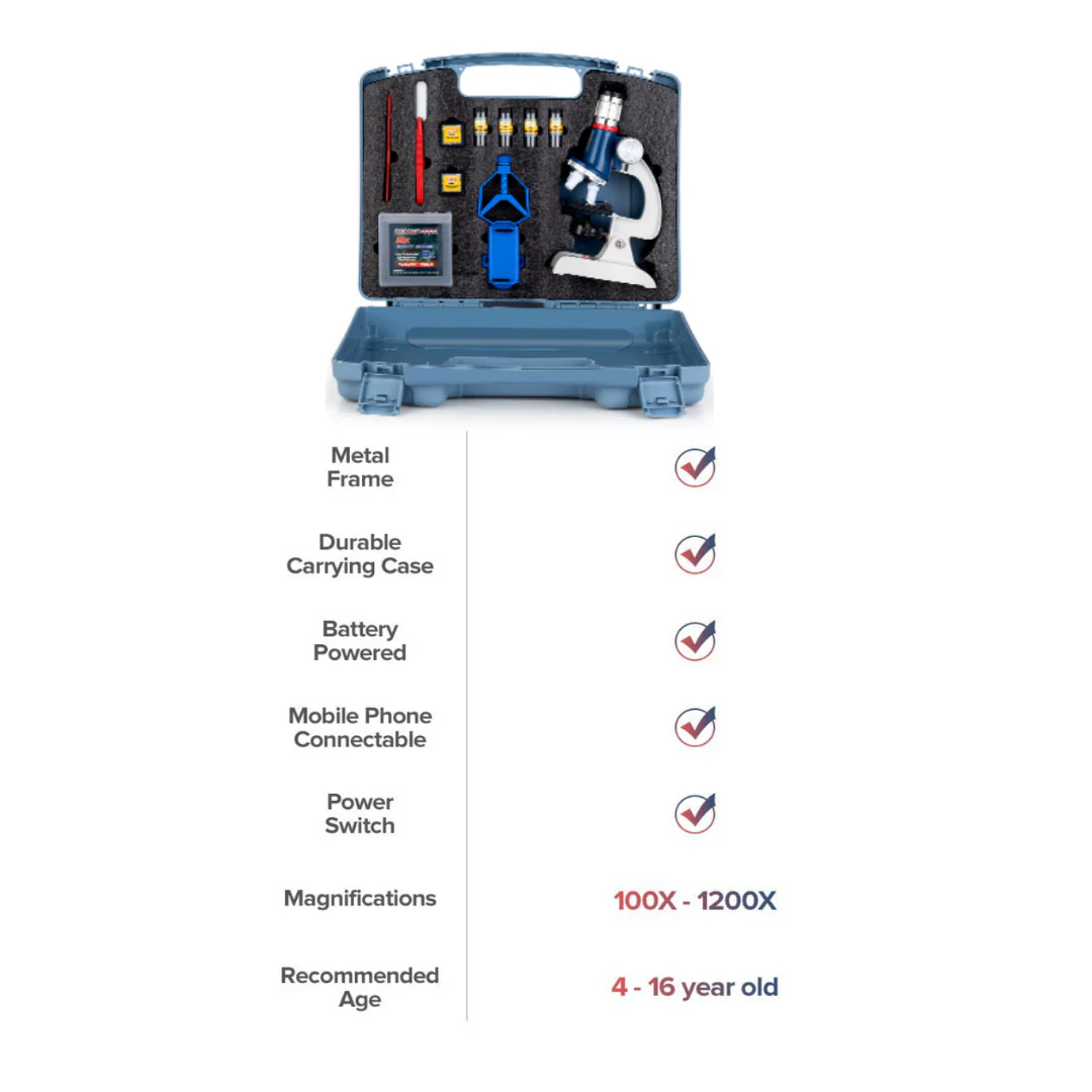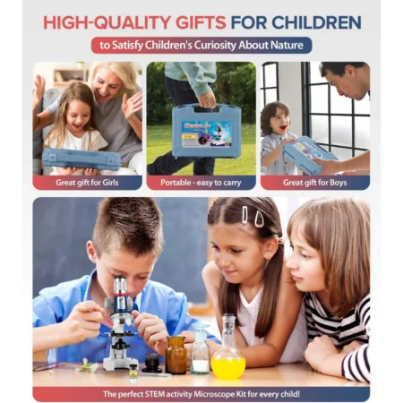 - GREAT STARTER SET FOR A YOUNG SCIENTIST – Give a fun educational gift to your little Einstein! Make scientific investigation with your kids by this microscope kit. Ideal for the little scientist to observe, learn and explore more about biology, histology and drugs
